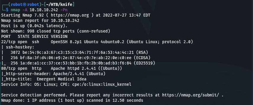 nmap -A 10.10.10.242 -Pn