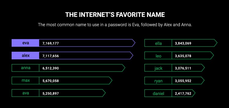 The stats below show the use of most popular names in password breaches from Nordost study: