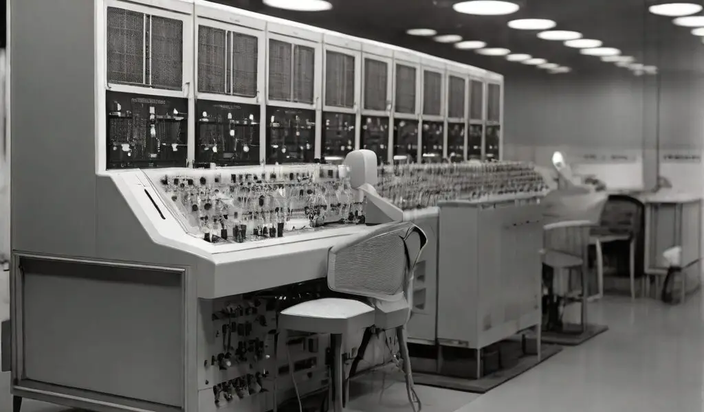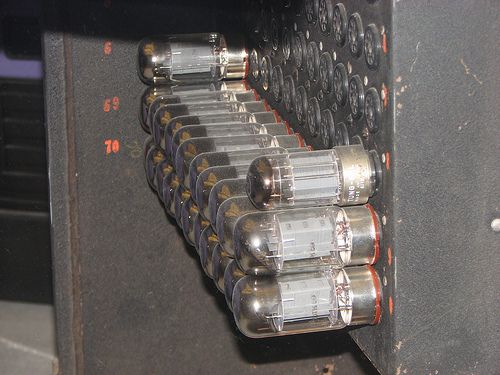 Imagine a massive room filled with large metal cabinets, each packed with glowing vacuum tubes. These vacuum tubes, similar to old-fashioned light bulbs, could be used as fast electronic switches.